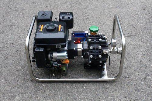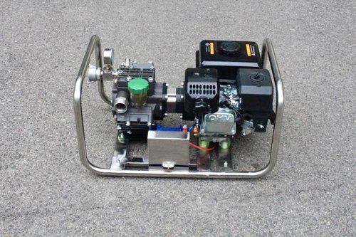 三缸柱塞液压隔膜泵,手电双启动,配备脉动阻尼器装置,有效减少出水脉冲造成的出水管震动。